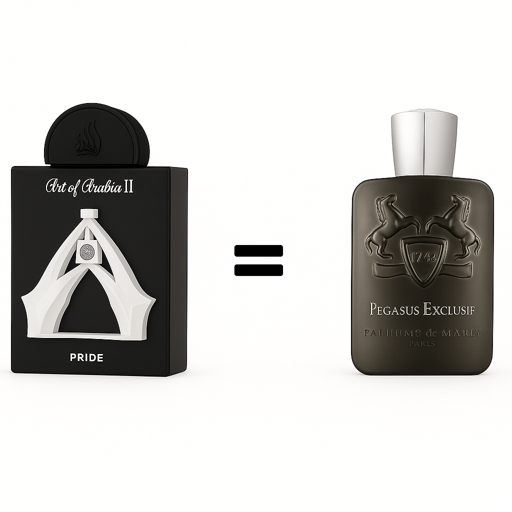 Art of Arabia II es una fragancia unisex que se inspira directamente en Pegasus Exclusif de Parfums de Marly. Su apertura especiada y ligeramente cítrica da paso a un corazón floral y un fondo dulce, cremoso y oriental. Es una fragancia intensa, elegante y con una firma olfativa muy característica, perfecta para los amantes de los perfumes con presencia.