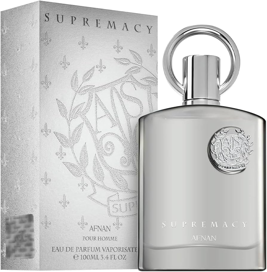 Supremacy Silver de Afnan es una fragancia masculina que se inspira directamente en el icónico Creed Aventus. Ofrece una mezcla afrutada y cítrica en la salida, con un corazón floral suave y un fondo amaderado con almizcles elegantes. Es una excelente opción para quienes buscan el ADN de Aventus con buena duración y a un precio mucho más accesible.
